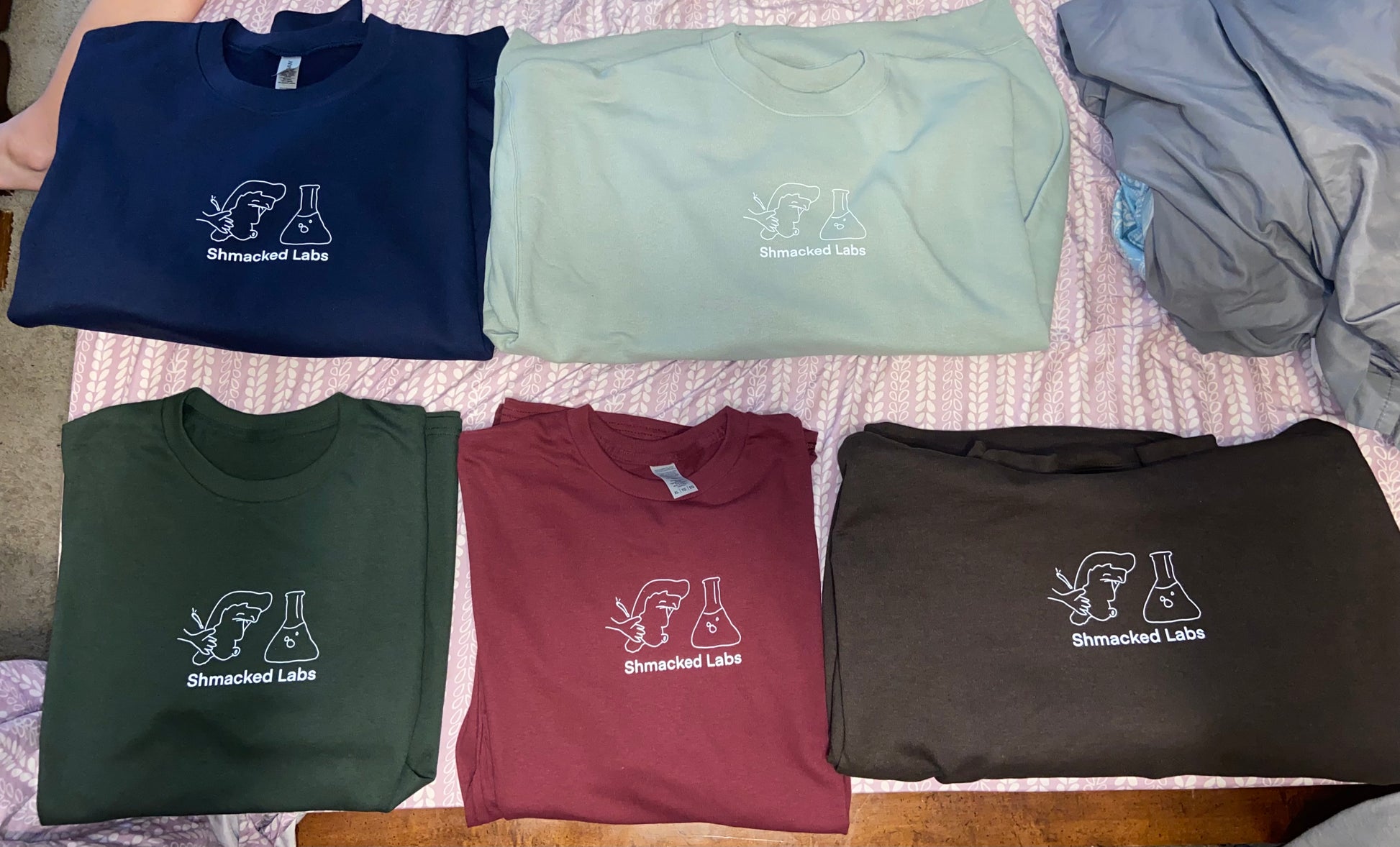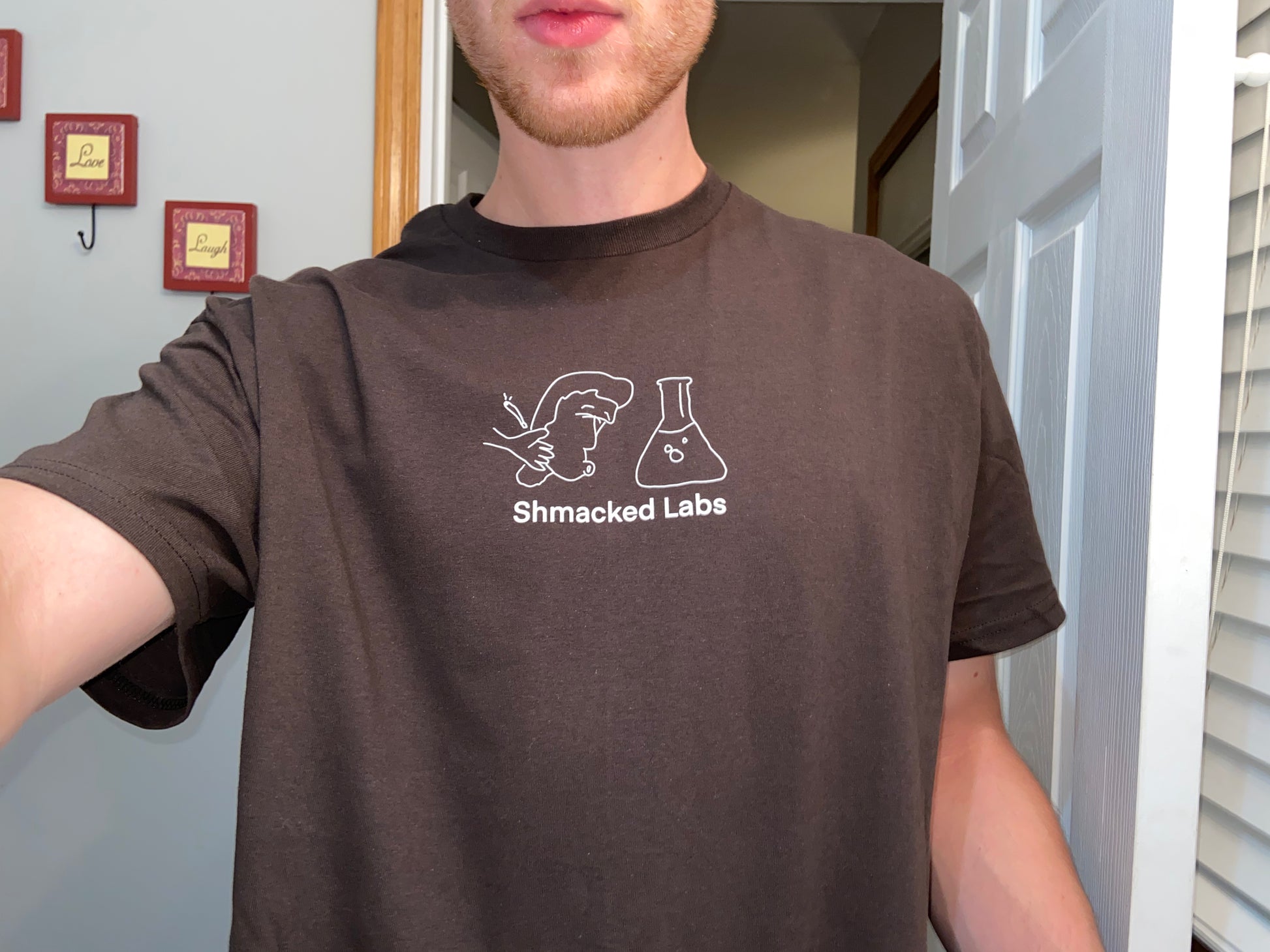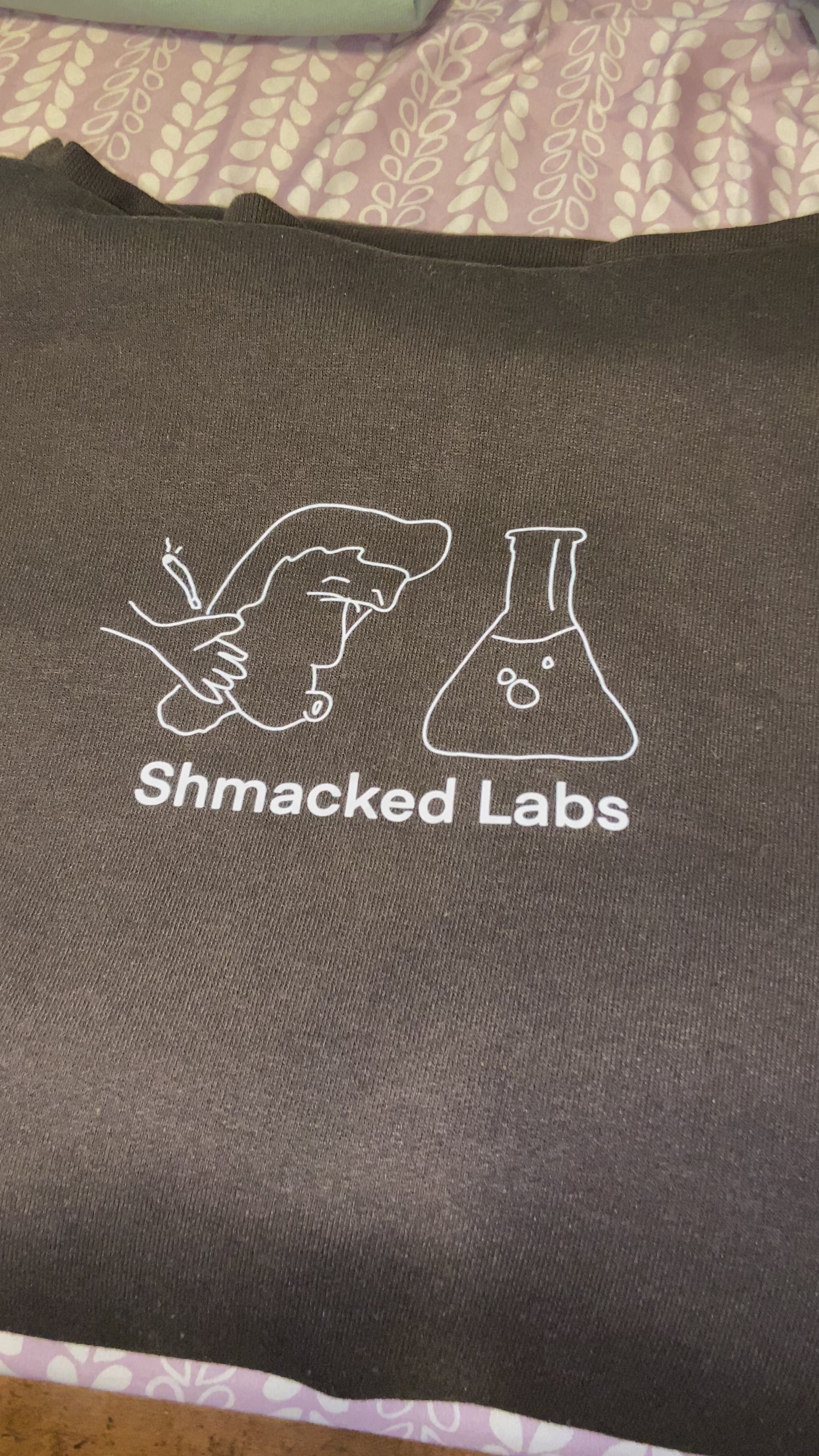 The first picture that popped into my mind when I came up with shmacked labs. Now our signature graphic. On a t-shirt.